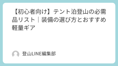 【初心者向け】テント泊登山の必需品リスト|装備の選び方とおすすめ軽量ギア